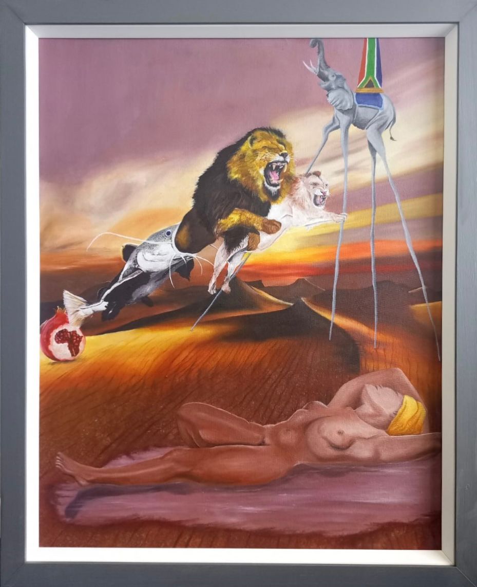 This creative piece with title, Mona Lisa Re-Imagined, is created with acrylic on canvas.