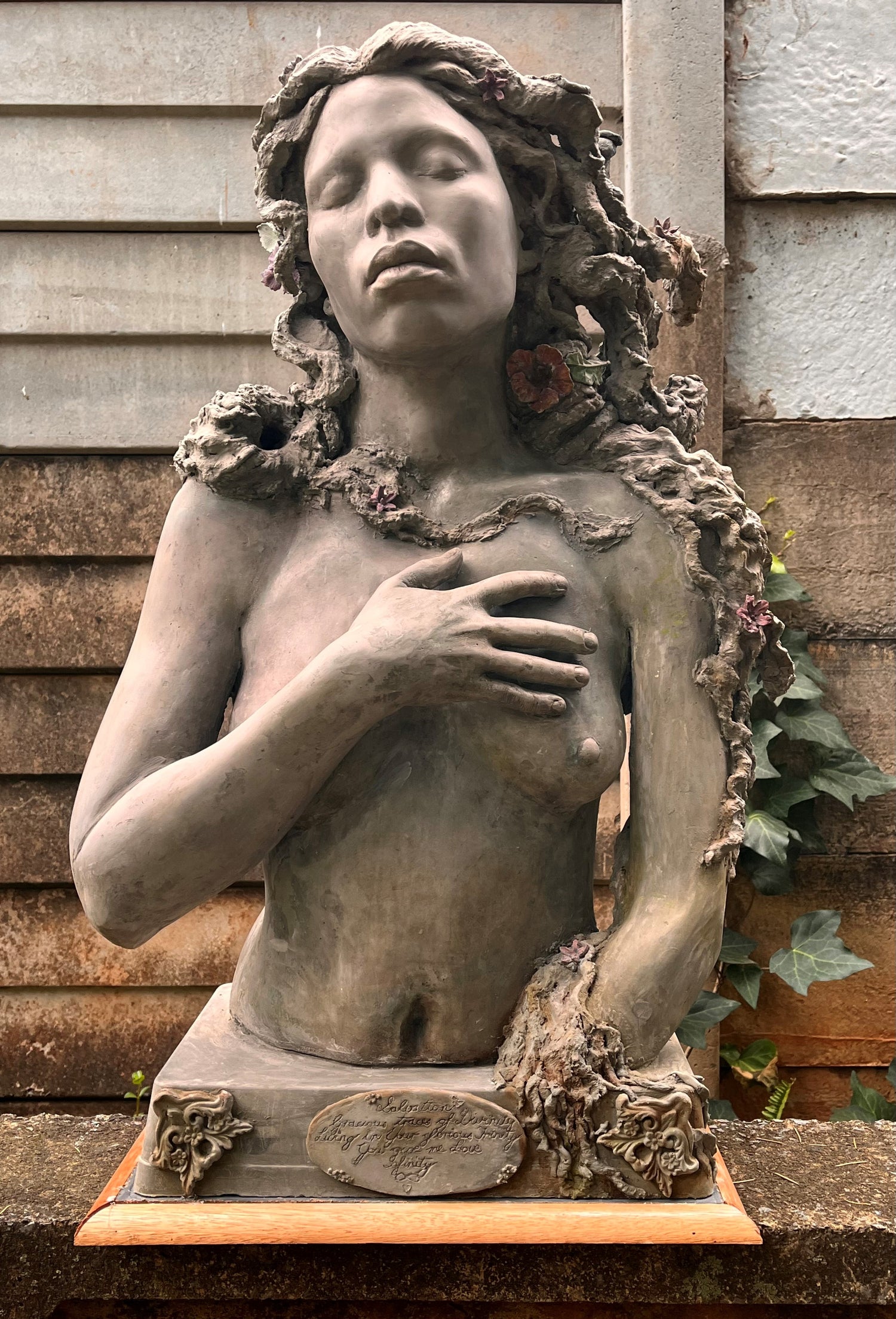 This breath-taking sculpture with title, Serenity, is created with concrete.