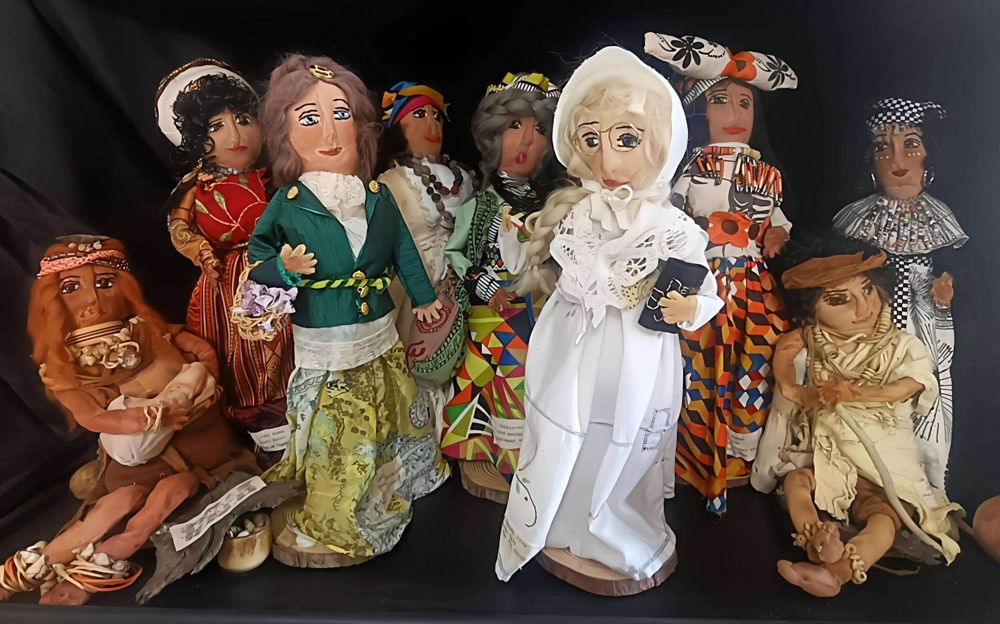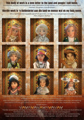 The nine dolls I created are more than stitched figures—they are vessels of memory, heritage, and storytelling. Each doll carries within its fabric the spirit of the women who came before us, their resilience, and the quiet beauty of traditions passed down through generations. I am deeply inspired by fabric itself—woven, quilted, embroidered, and patched—because it holds the history of hands that worked, created, and cared. Fabric is heritage in tangible form, every thread binding us to stories of family, culture, and identity. Through these nine dolls, I sought to honour that legacy, using texture, colour, and stitch as my language. They stand together as nine voices, each unique, yet connected in unity—symbolizing the strength and diversity of heritage. My hope is that those who see them will feel the richness of fabric as more than material: as memory, faith, and love woven into art.