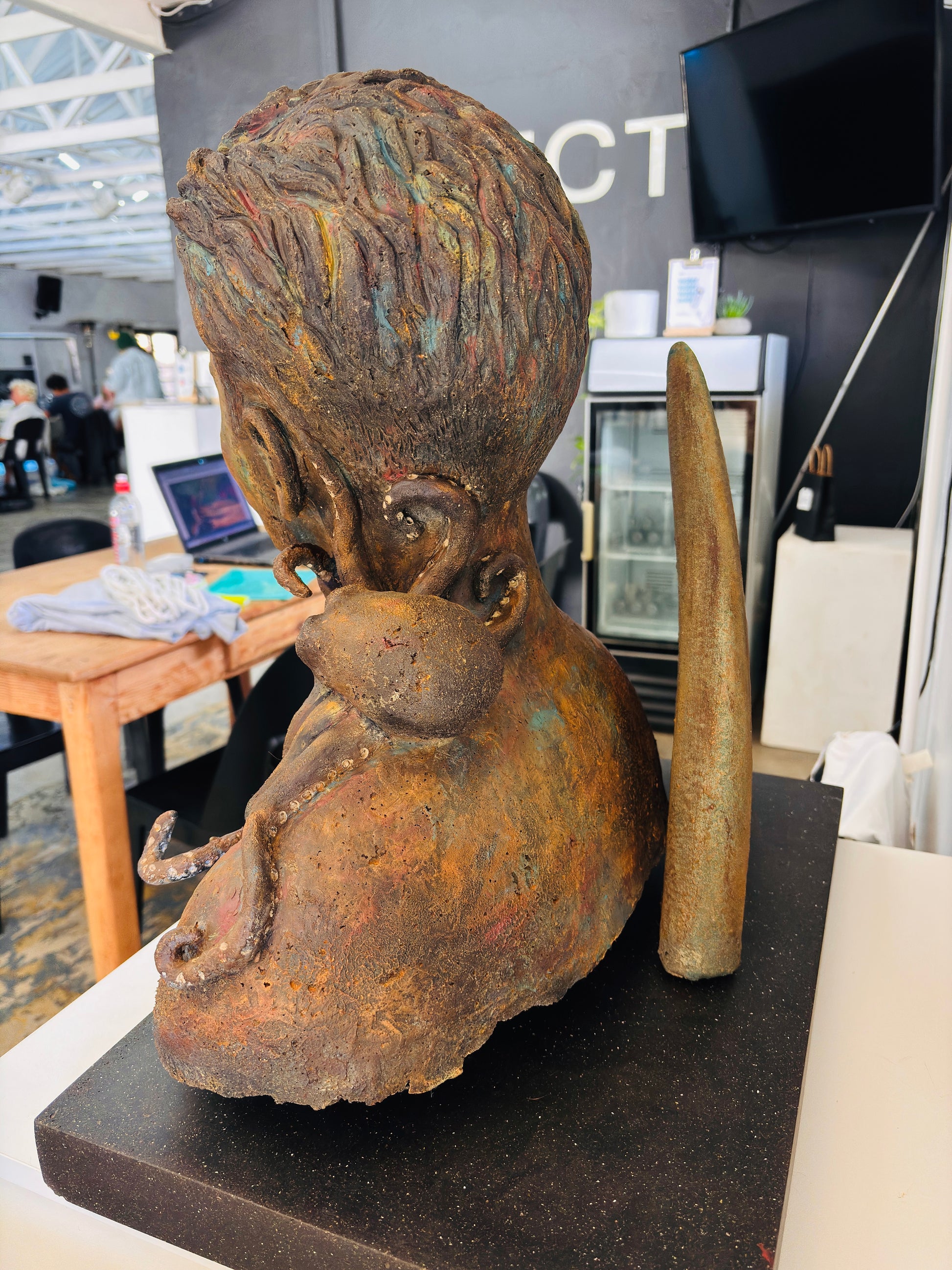 She specialises in polyester resin composite sculptures but also uses other mediums in her work.